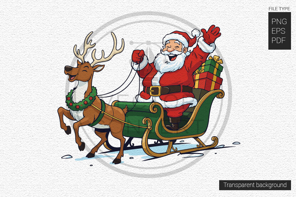 Santa Claus with reindeer and gifts in Christmas day vector illustration